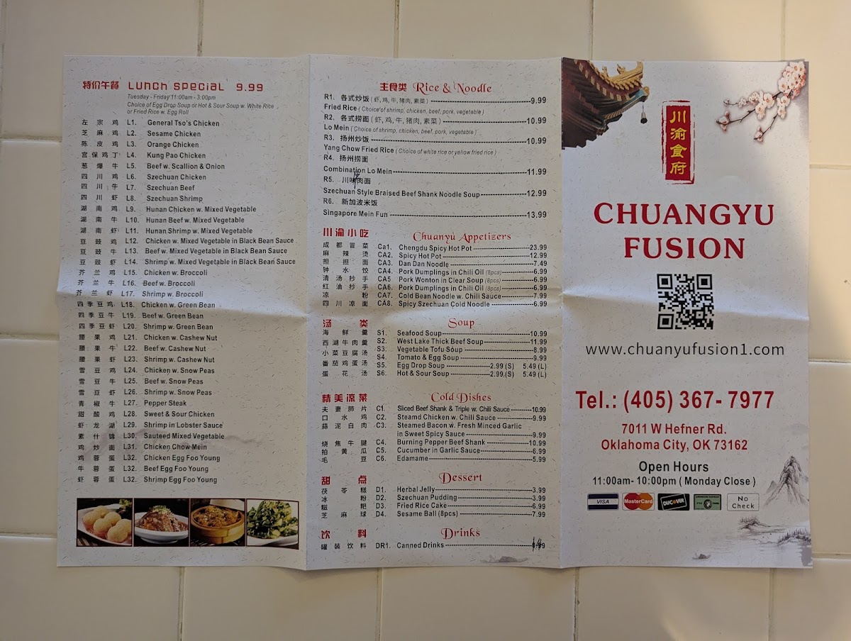 Welcome to Chuanyu Fusion 川渝食府, your destination for an authentic Sichuan dining experience in Oklahoma City. Located at 7011 W Hefner Rd, this inviting eatery has garnered a loyal following for its enticing flavors and generous portions. Reviews praise the balance of spice and flavor, especially in dishes like the spicy sesame chicken and unique Sichuan delights that set it apart from typical Chinese fare.
